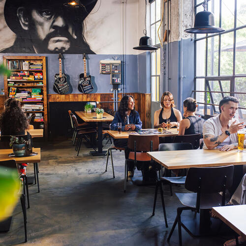 Tussen de hippe winkels en restaurants in Strijp-S vind je Stayokay Eindhoven. Het hostel heeft betaalbare gedeelde- en privékamers, altijd met een eigen badkamer. Op de begane grond vind je het Blue Collar Café, waar rock & roll tot leven komt! Drink 's ochtends een lekkere koffie, schuif 's middags aan voor de lunch of borrel, en blijf 's avonds gezellig hangen voor een biertje aan de bar. Je bent hier de hele dag door welkom!